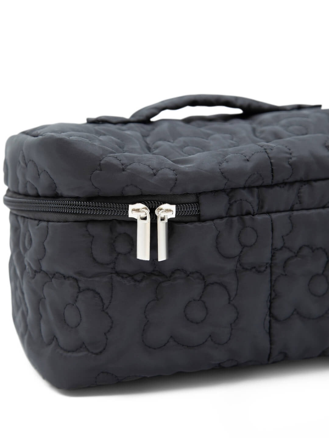 Introducing the Fleur Vanity Case! This quilted case features a convenient self-handle on top, making it easy to carry for all your adventures—whether you’re heading to the studio, traveling, or simply organizing your beauty essentials at home. The secure zipper closure with a sleek silver double-pull ensures that your belongings are safely stored. This vanity case is the perfect size for makeup, toiletries, and small accessories. Its compact design fits easily into your bag, making it an essential companion for travel or daily use.